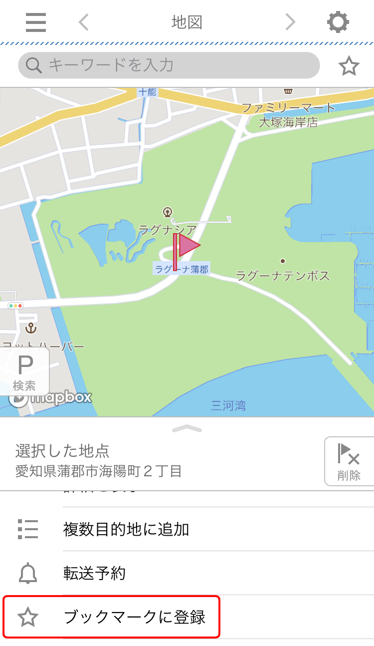 1ブックマークに登録したい地点を長押ししてピンを立てます。