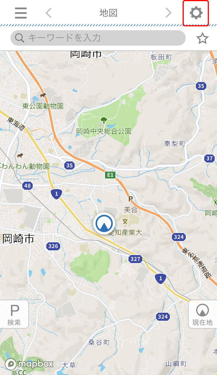 駐車した位置で[現在地を記録]を押すと駐車した位置に が表示されます。