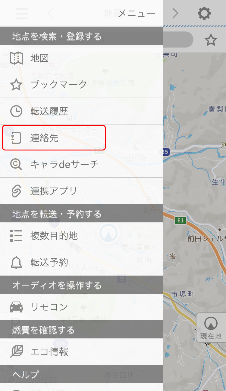 その隣から順に追加目的地転送、複数目的地追加、ブックマーク登録、メールで送信を行うことができます。