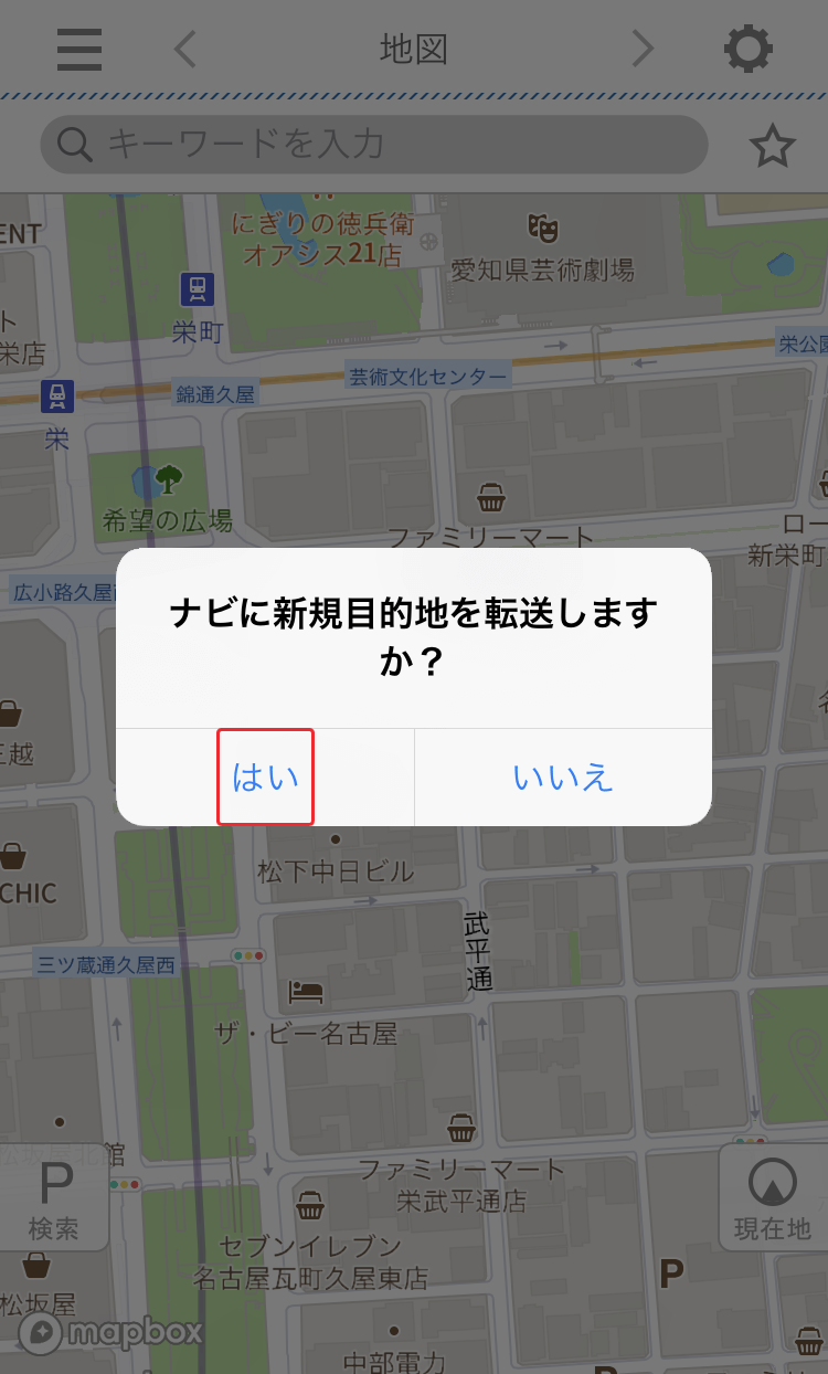 3登録されている住所を選択するとその住所にピンがセットされます。